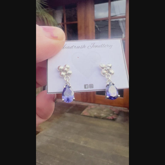 Elevate your jewellery collection with these versatile Amethyst Dangle Studs. Featuring stunning 10mm x 8mm faceted amethyst stones set in a refined sterling silver claw setting, these earrings transition seamlessly from the office to evening occasions. The delicate fine silver flower studs and 18mm drop length create an understated elegance that complements any look. Perfect for those who appreciate timeless design.