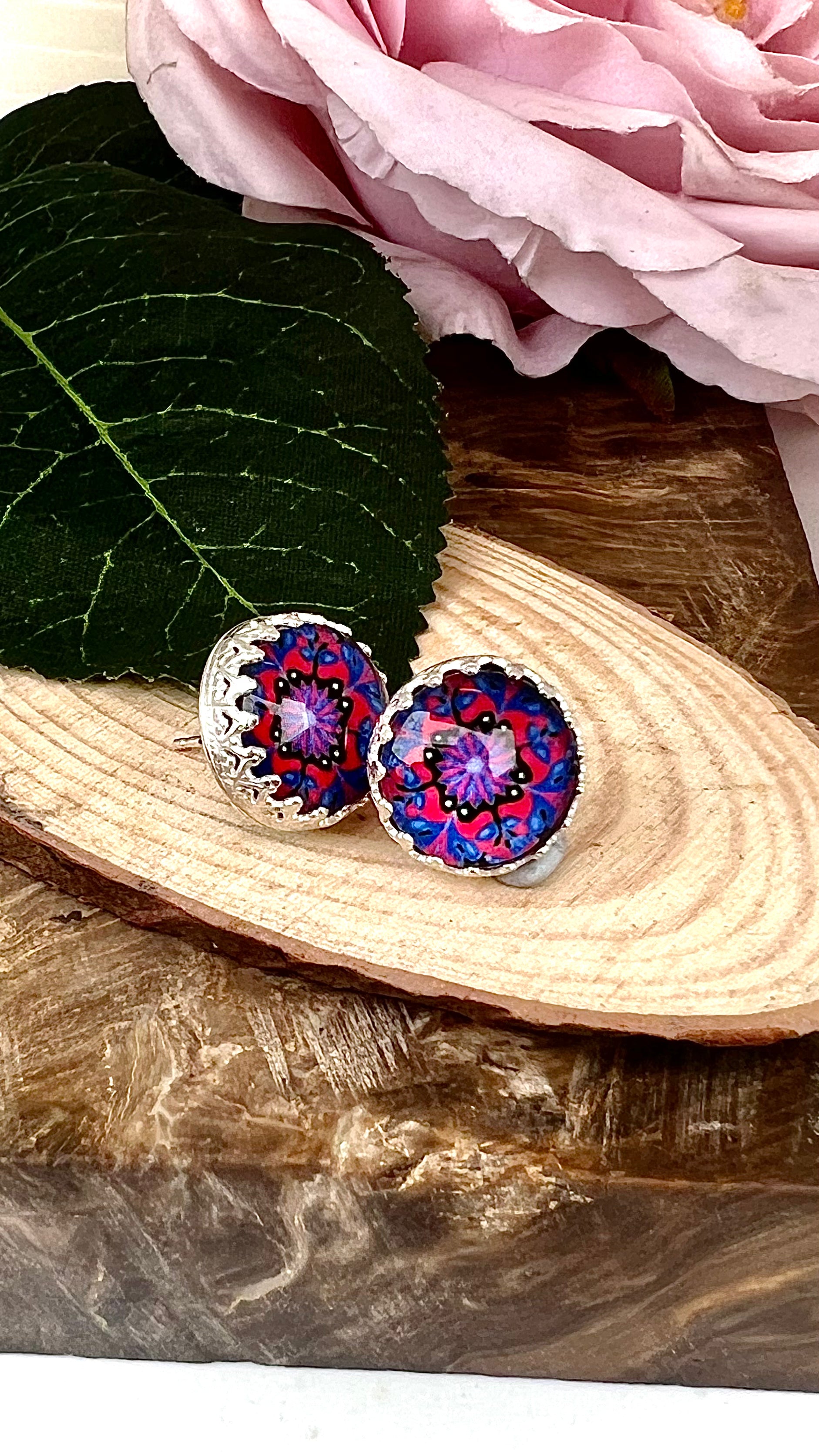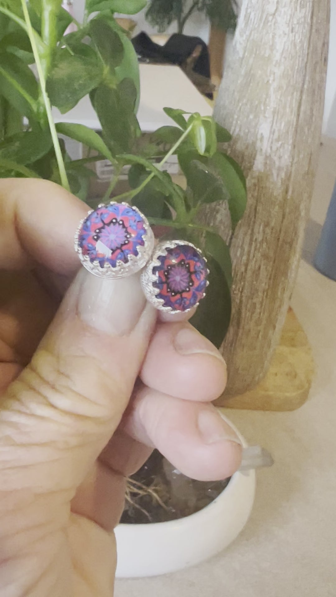 These Cute little pink and blue studs, set in gallery wire, will be sure to add a bit of colour to your day.