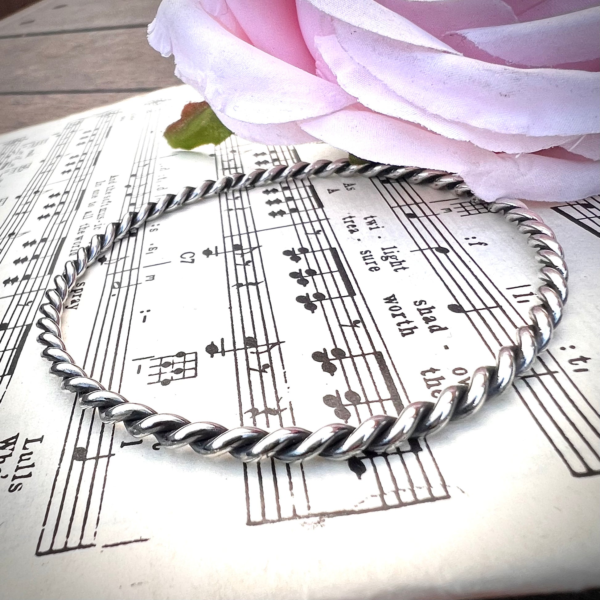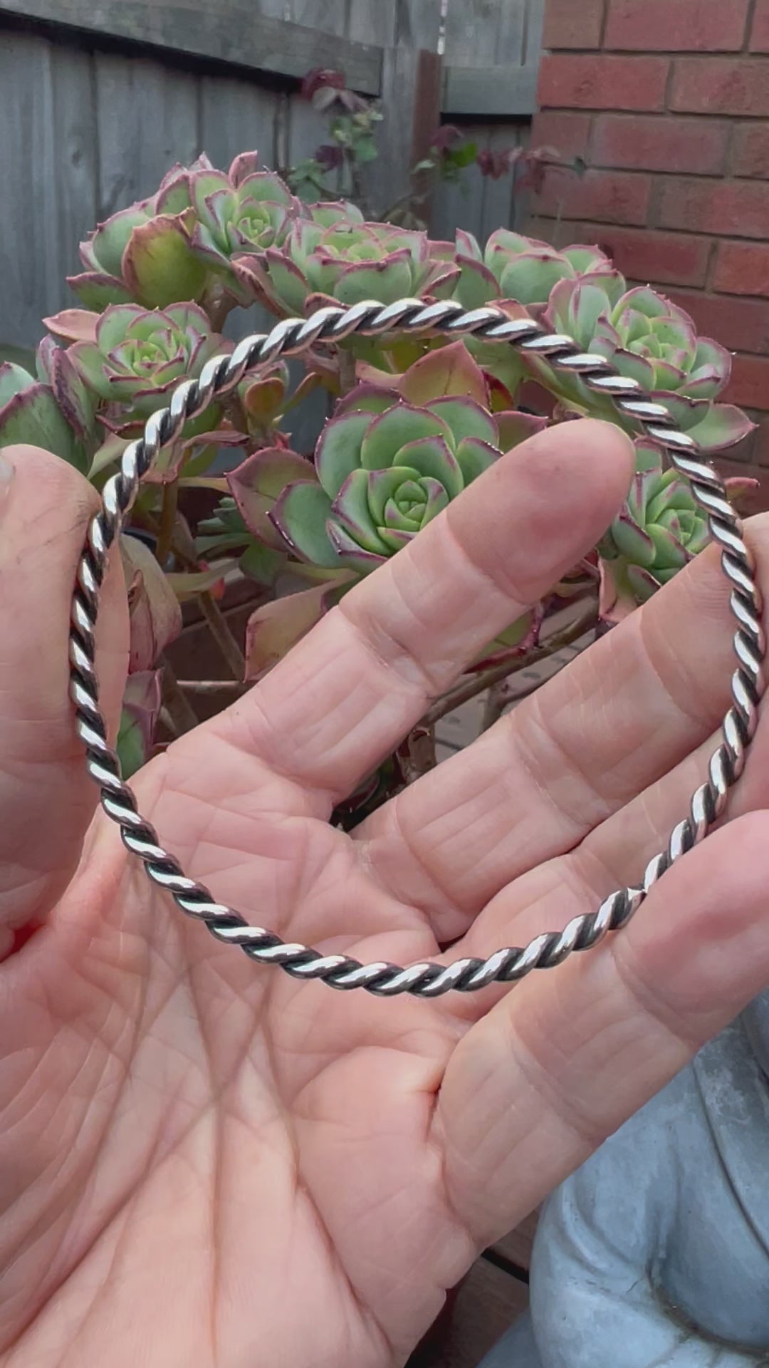 The 'Isabelle' Bangle is 3.5mm wide twisted wire.