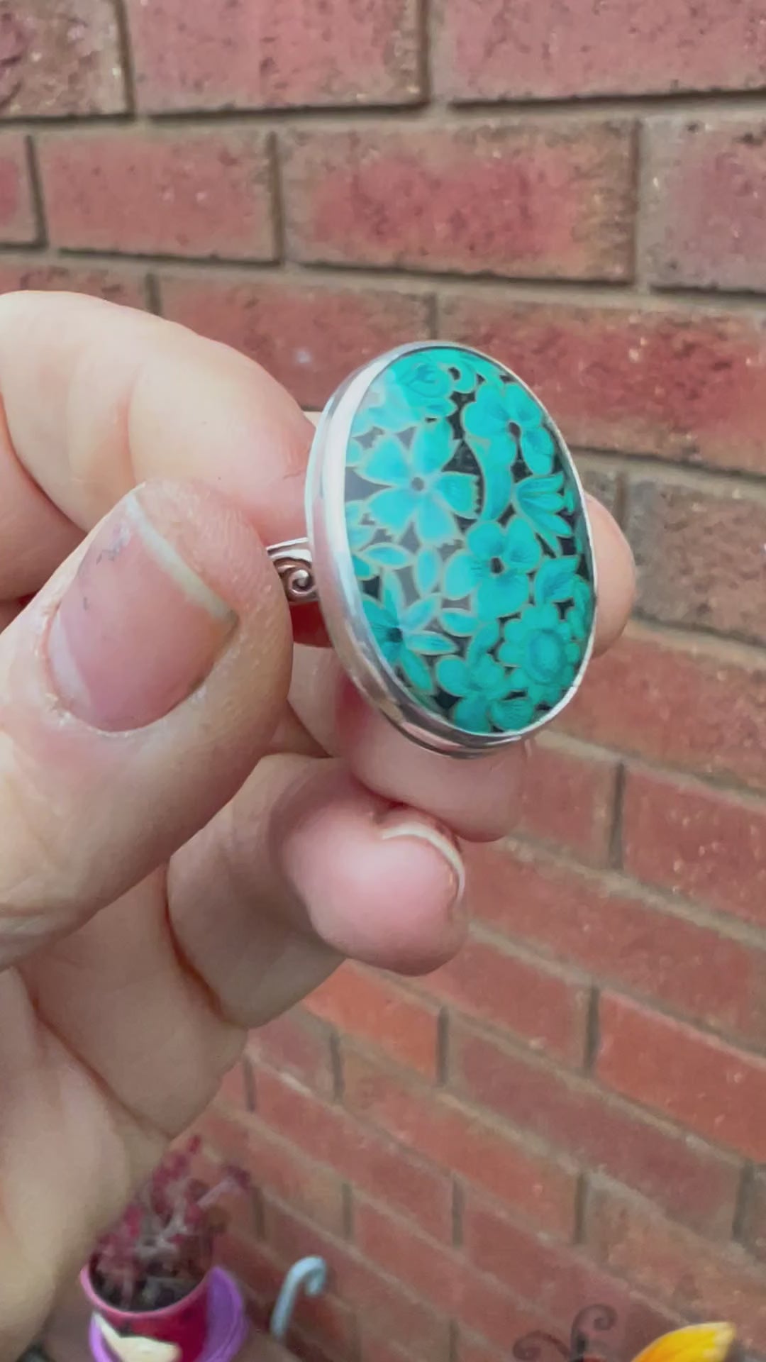 This lovely ring is made of Lucite (a brief history below) it is scratch resistant and this lovely piece is 20mm x 25mm and is set in a very plain setting on a filigree band which is a size 8 1/2.