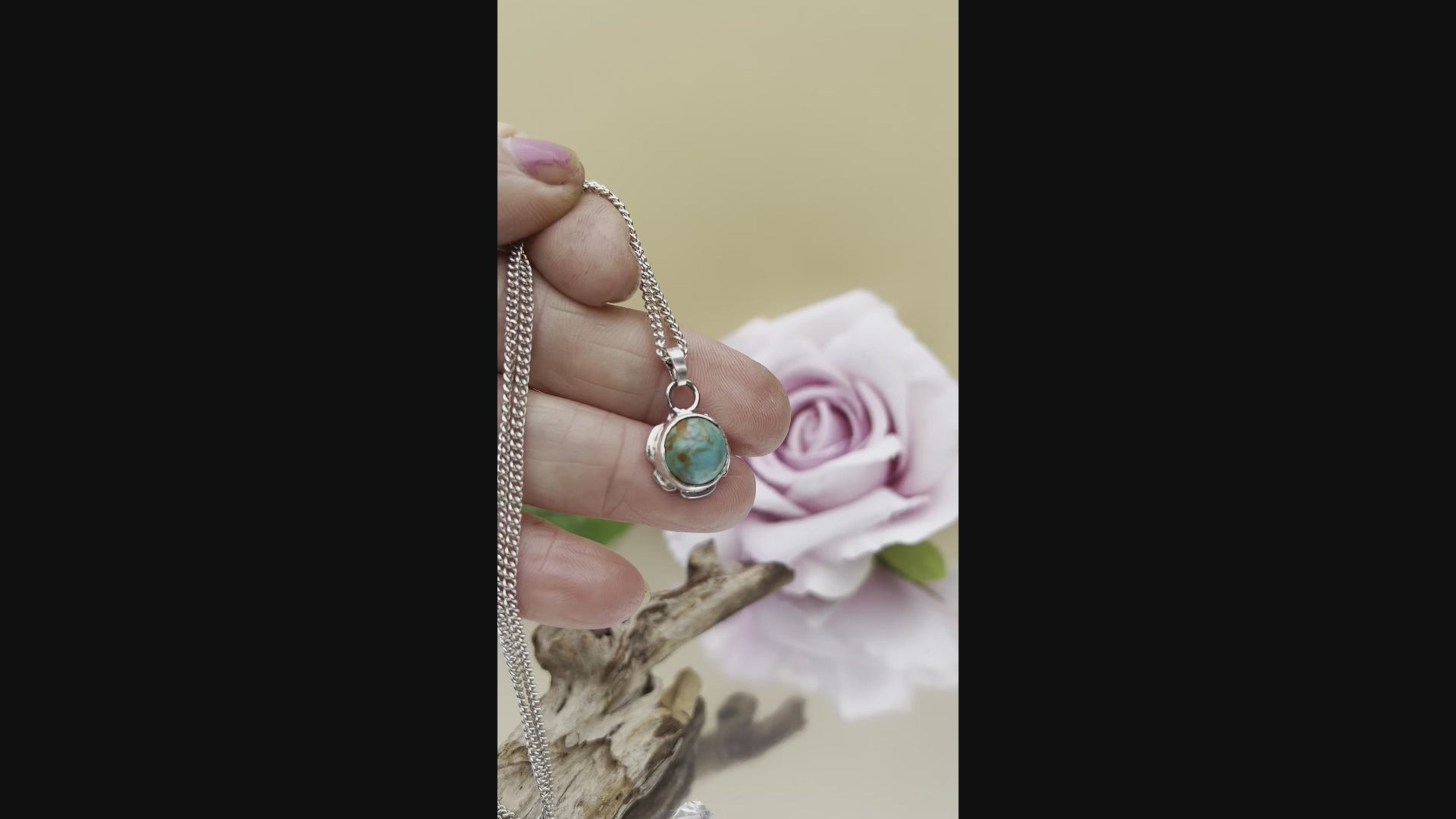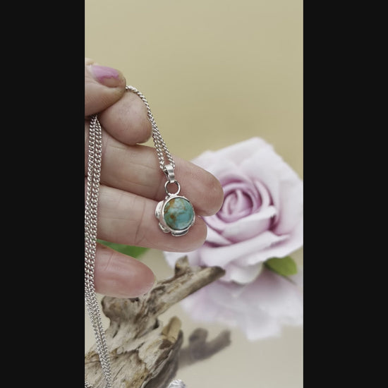 This pendant showcases a rare 10mm Kingman Gold Turquoise from the distinguished No. 8 mine in Arizona’s Kingman district. Set in a 12mm fine and sterling silver frame, it highlights the stone’s natural beauty without any backing. Suspended from a 2.09mm sterling silver close curb chain measuring 45cm, this piece combines durability with refined craftsmanship, making it a distinctive accessory for collectors and connoisseurs alike.